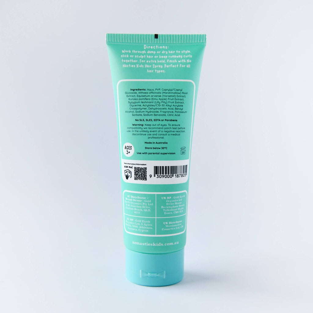 No Nasties Kids plant-based Hair Gel offers medium hold and shine.