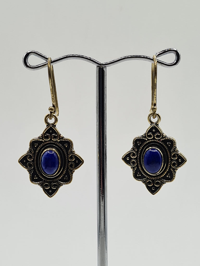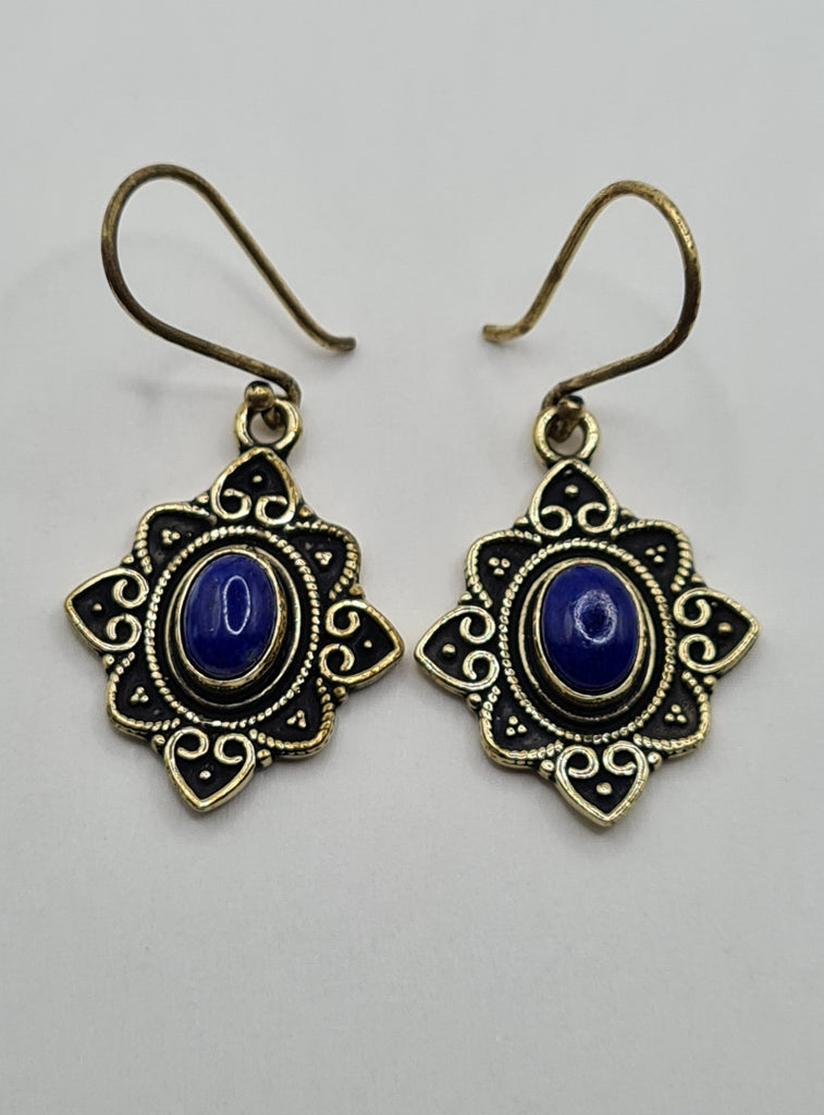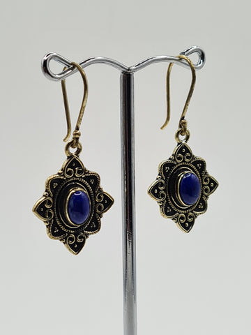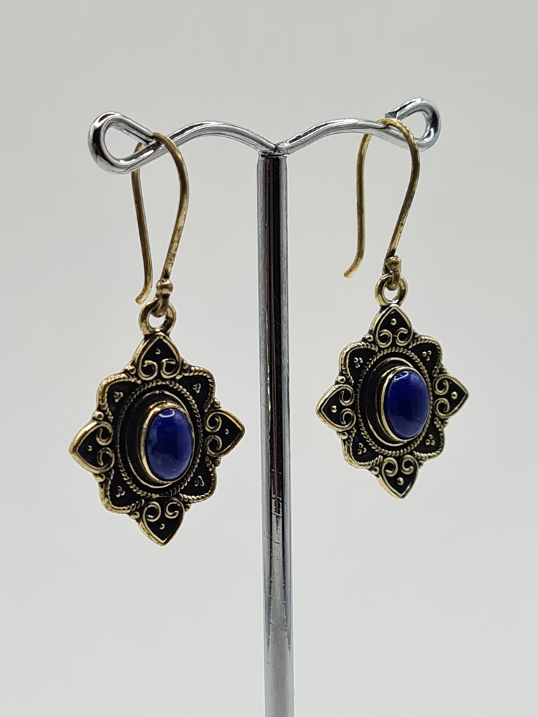 Lapis lazuli Flower large drop earrings