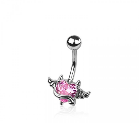 316L SURGICAL STEEL CZ HEART ANGEL DEVIL WINGS BELLY BUTTON NAVEL RING Product Code: NSD-980 Material: 316L SURGICAL STEEL/Alloy Thickness: 14GA (1.6MM) Length: 3/8" (10MM) Ball Size: 5MM